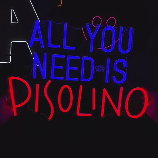 L'insegna è alimentata a corrente tramite alimentatore 12V nero compreso nella confezione con cavo di 180cm e spina italiana.