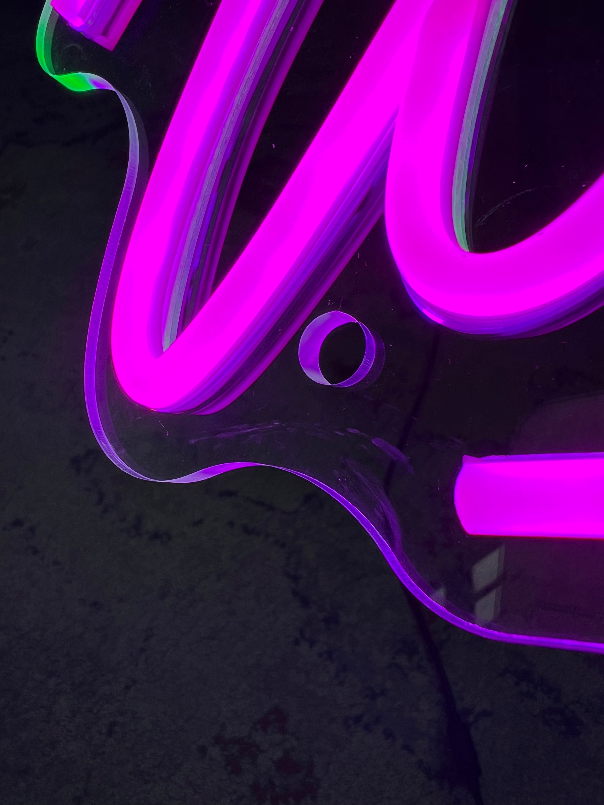 L'insegna è alimentata a corrente tramite alimentatore 12V nero compreso nella confezione con cavo di 180cm e spina italiana.