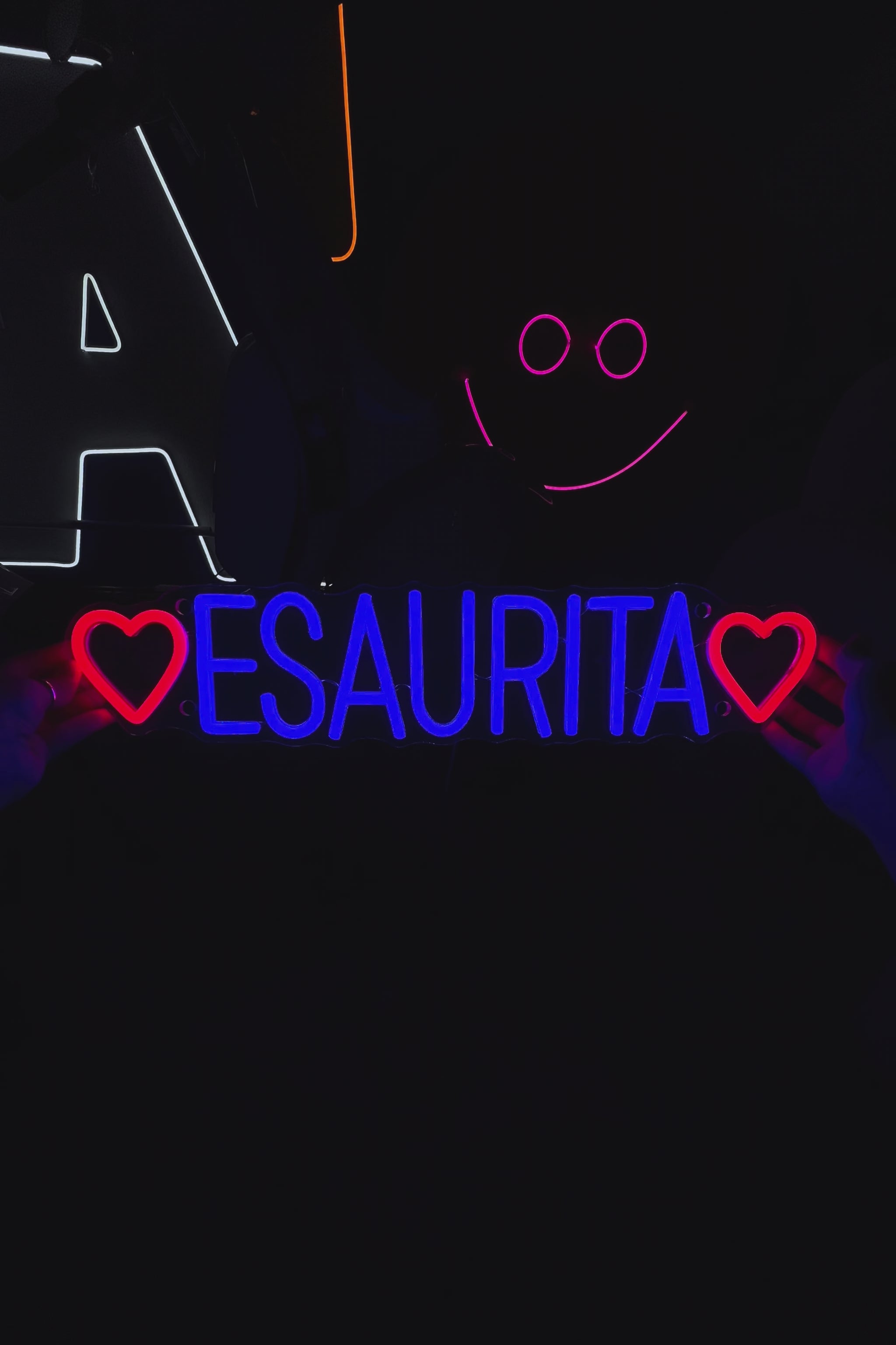 Scrittina led "ESAURITA", composta al 40% di imprecazioni e al 60% di luminosità.