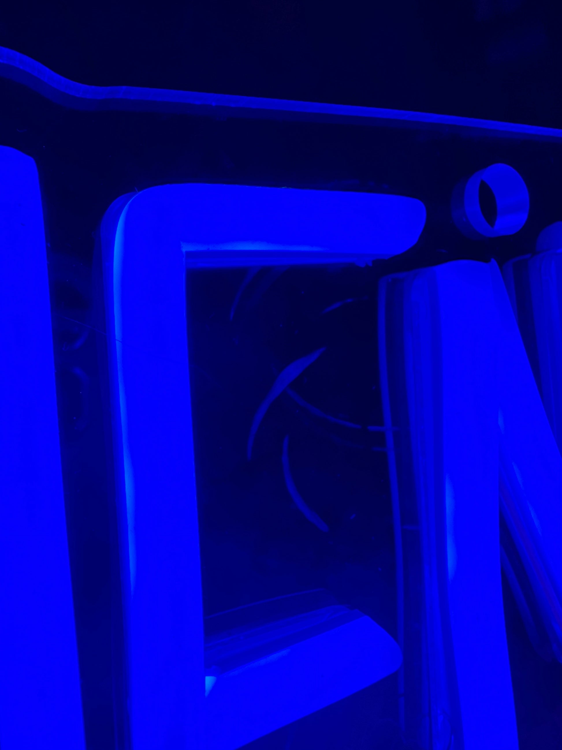 L'insegna è alimentata a corrente tramite alimentatore 12V nero compreso nella confezione con cavo di 180cm e spina italiana.