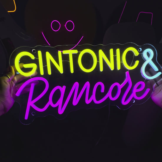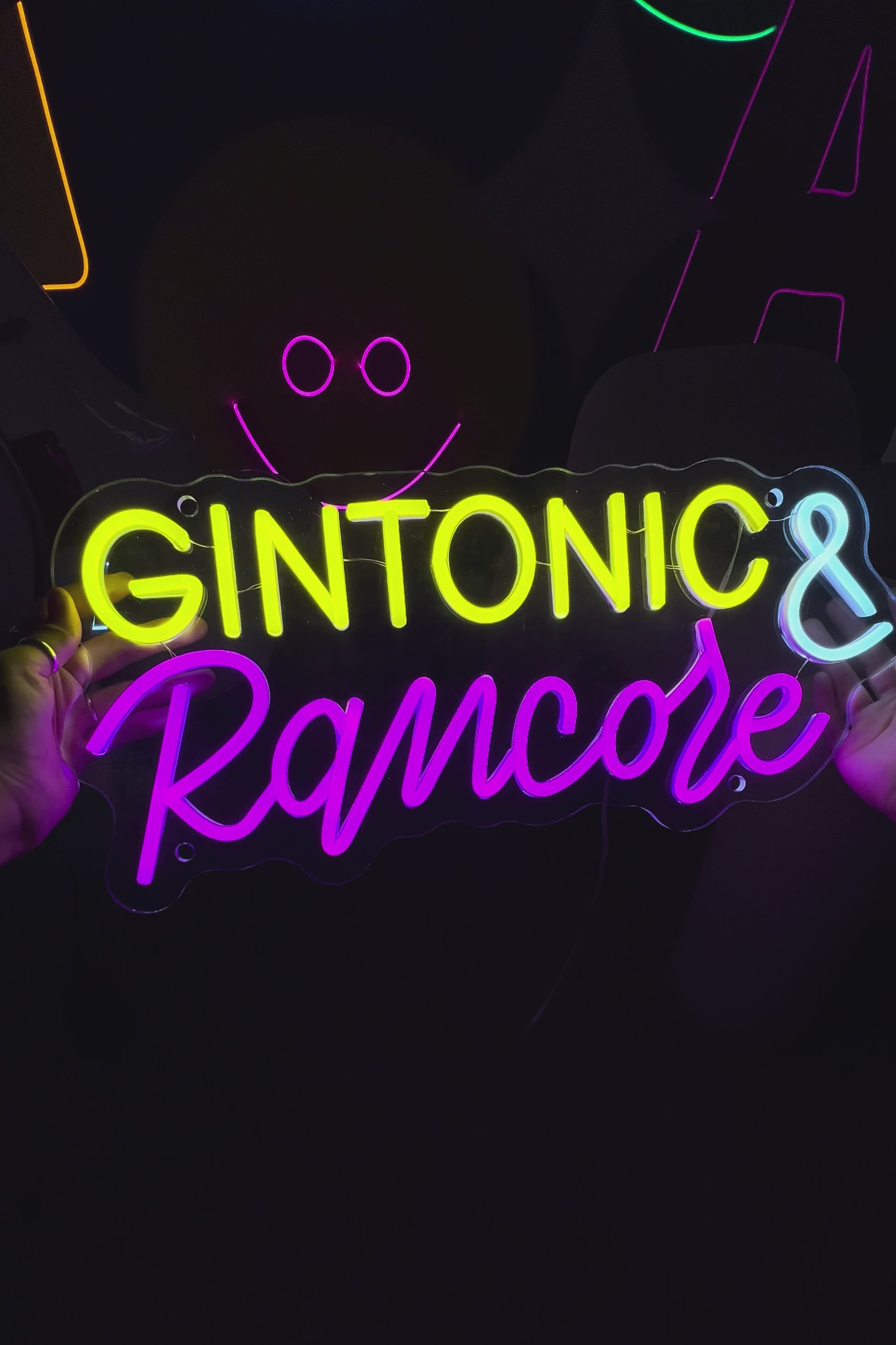 Scrittina led "GINTONIC & RANCORE", composta al 40% di imprecazioni e al 60% di luminosità.