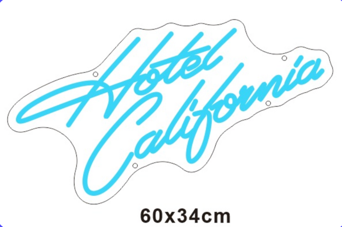 L'insegna è composta da strisce led colorate su pannello in plexiglass trasparente. Il pannello è forato per consentire l'appensione a parete del prodotto.