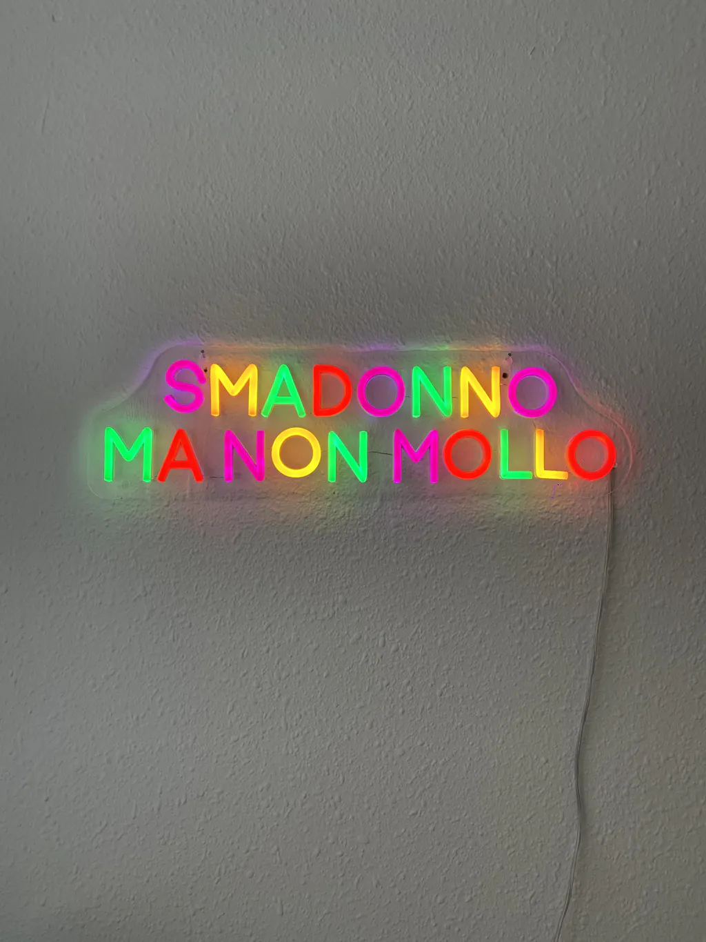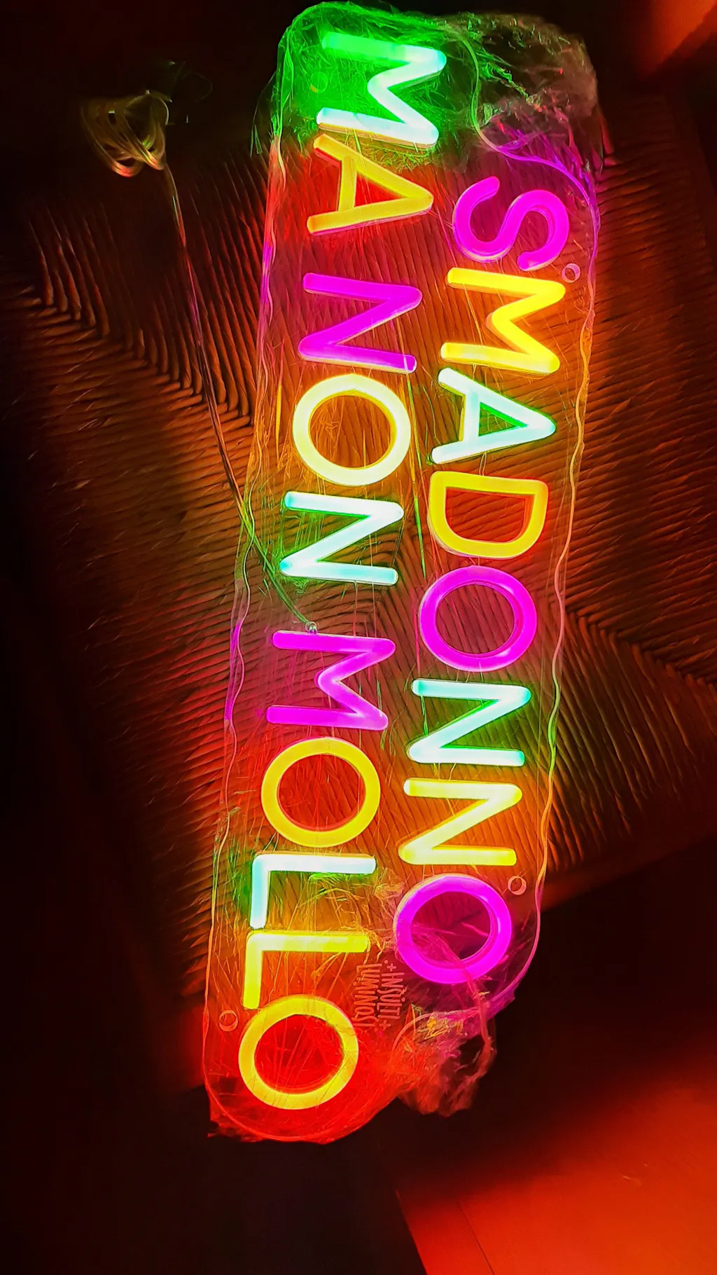 L'insegna è alimentata a corrente tramite alimentatore 12V nero compreso nella confezione con cavo di 180cm e spina italiana.