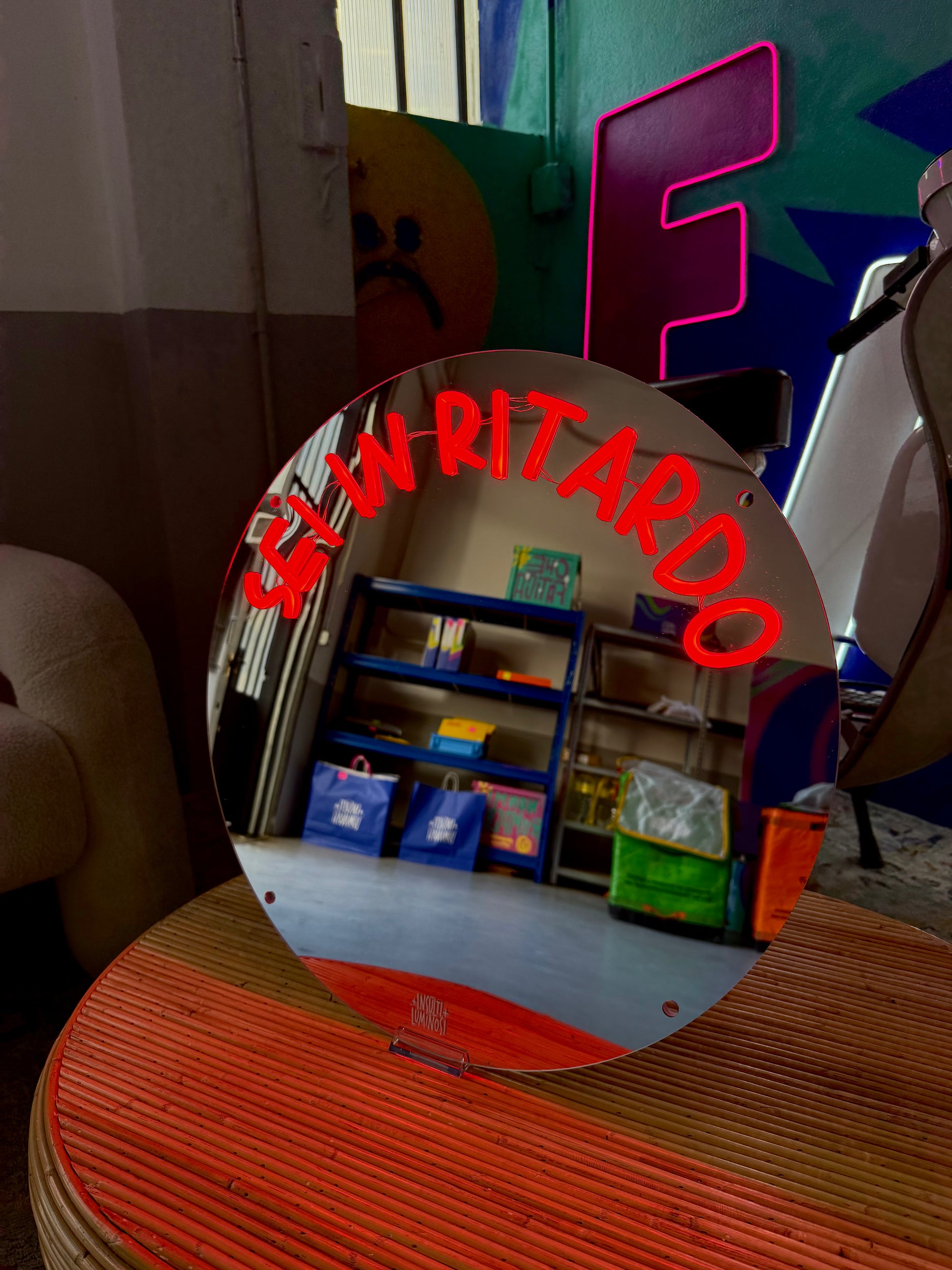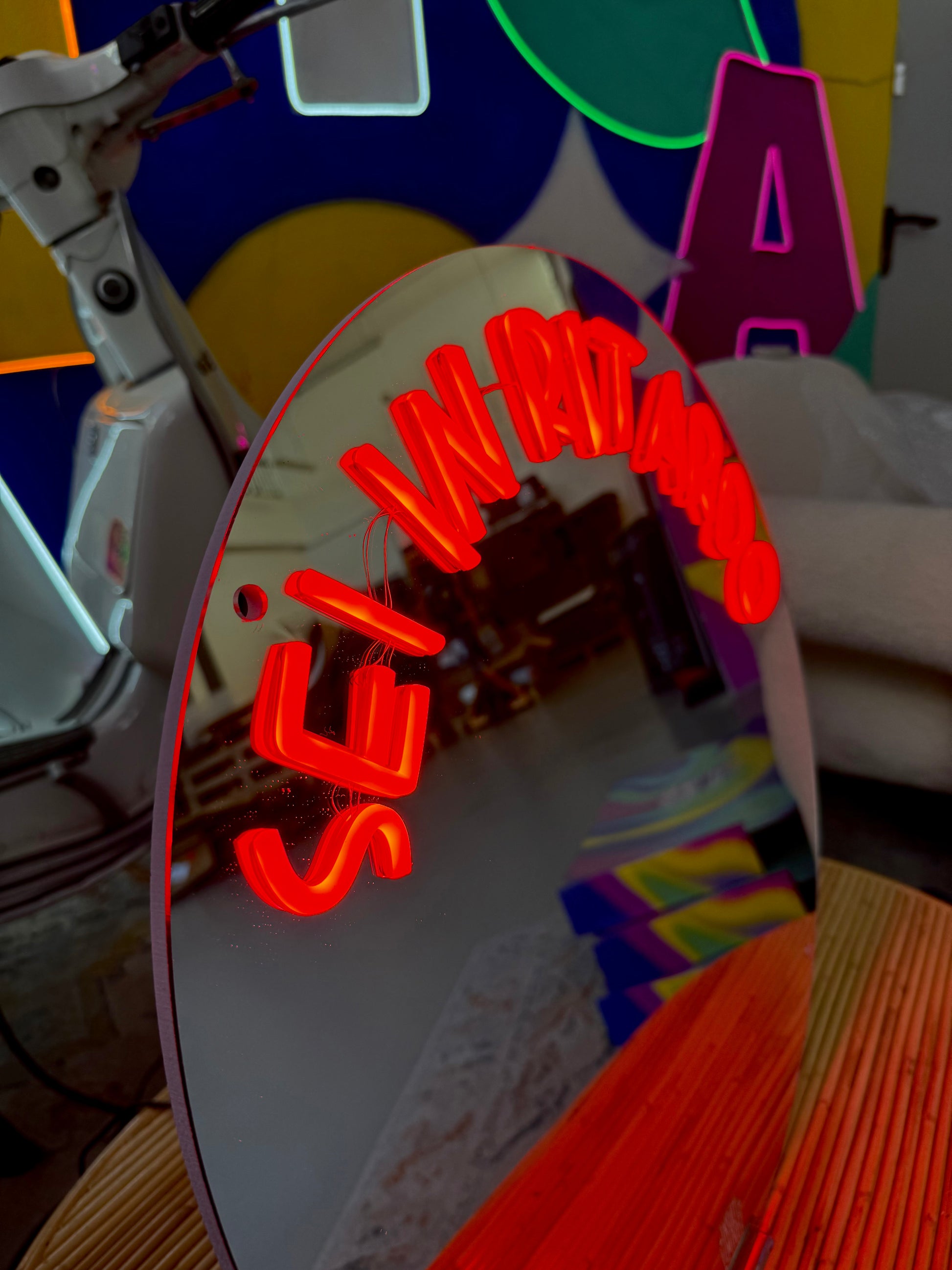 Questo pannello rotondo con superficie riflettente e scritta led integrata è il rimedio più efficace per ricordarti che ti devi muovere, e anche velocemente.