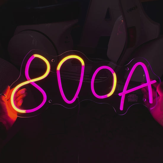 Scrittina led "800A", composta al 40% di imprecazioni e al 60% di luminosità.