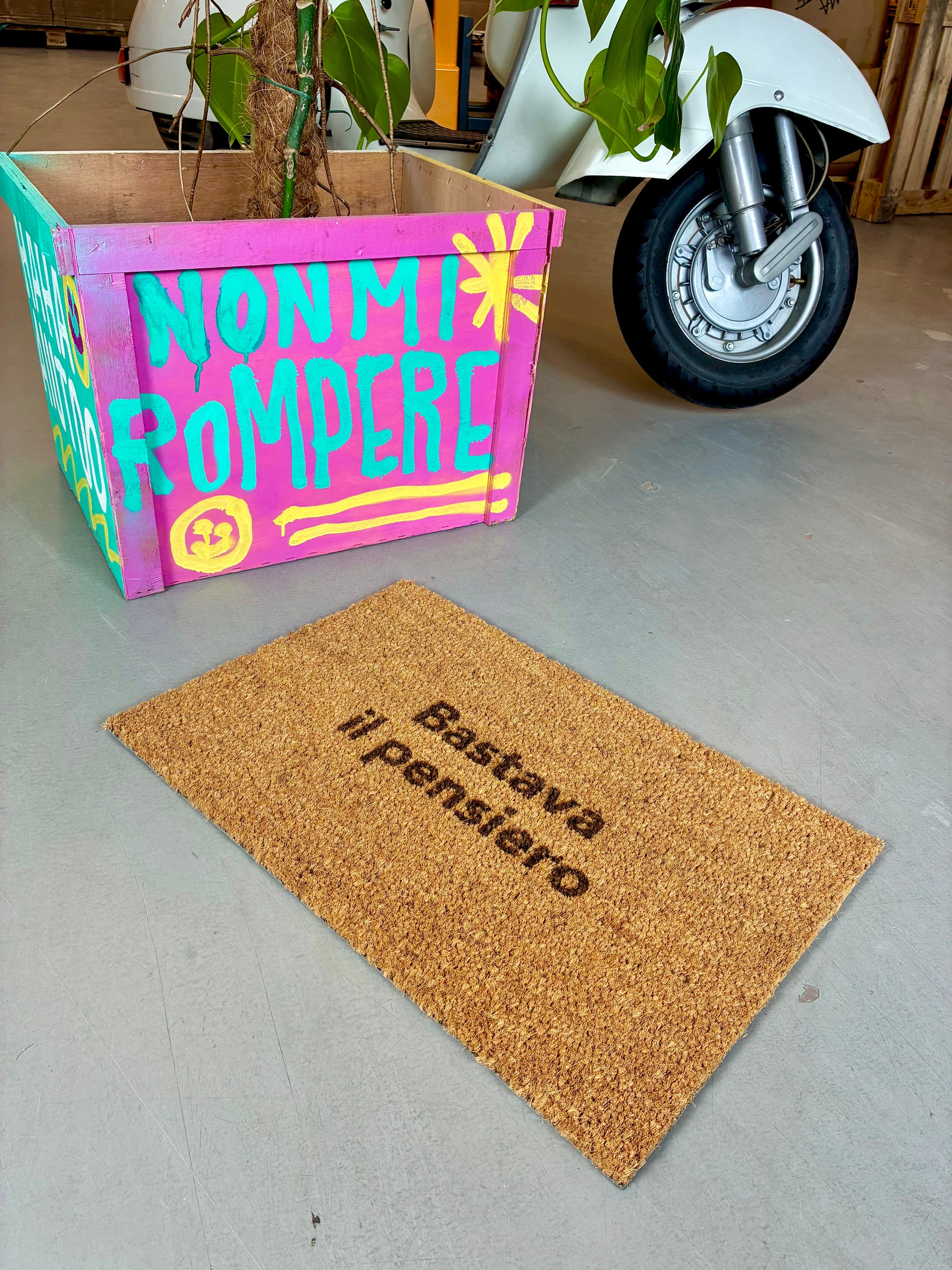 Zerbino da interno in fibra di cocco con scritta "Bastava il pensiero".