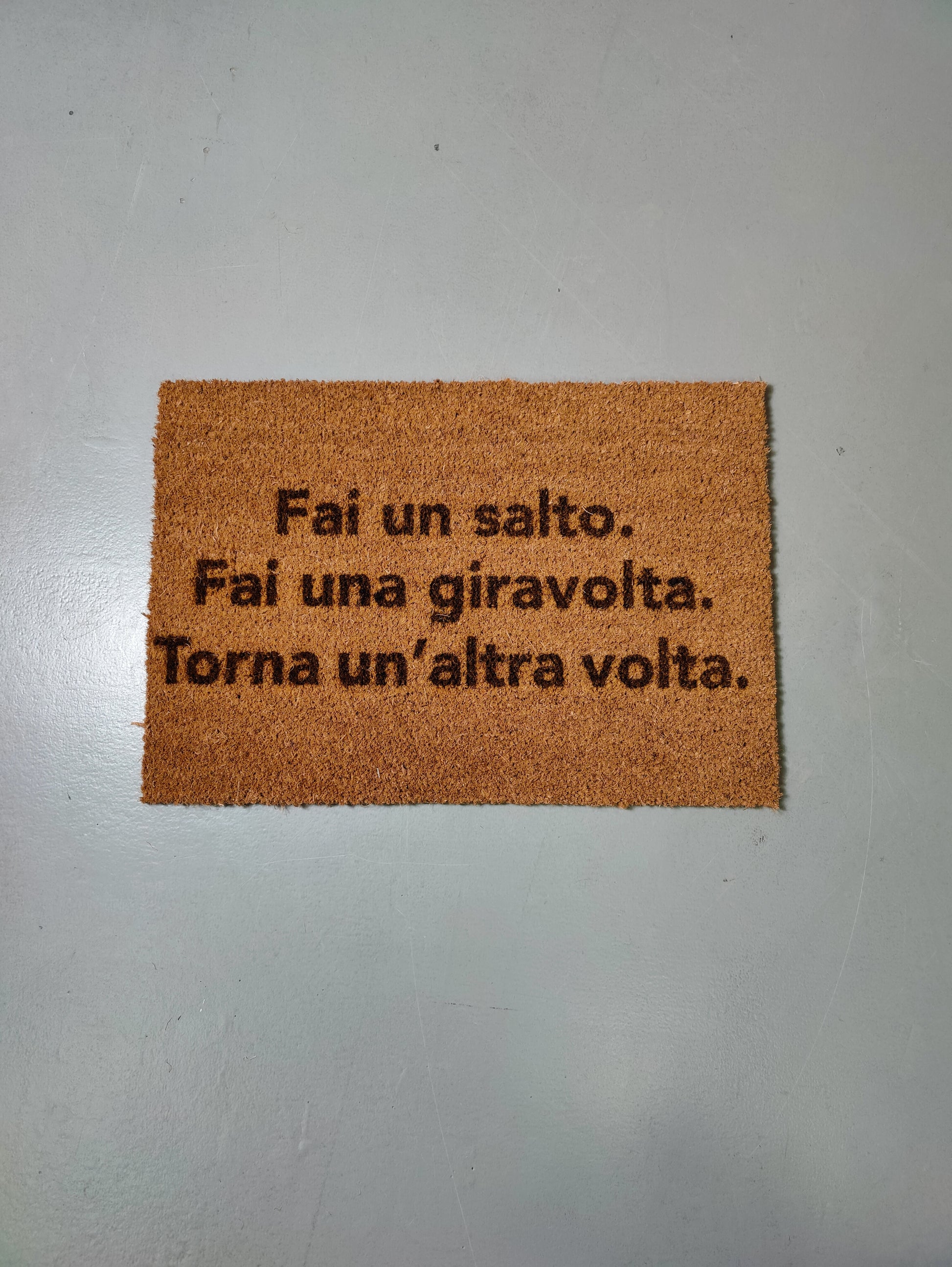 Zerbino in fibra di cocco e base antiscivolo in lattice naturale “Fai un salto, fai una giravolta, torna un'altra volta!”.