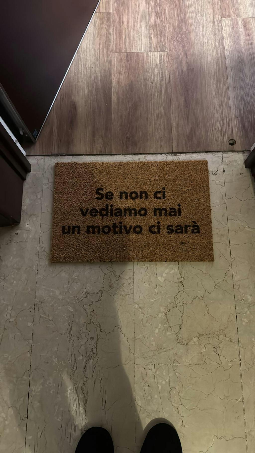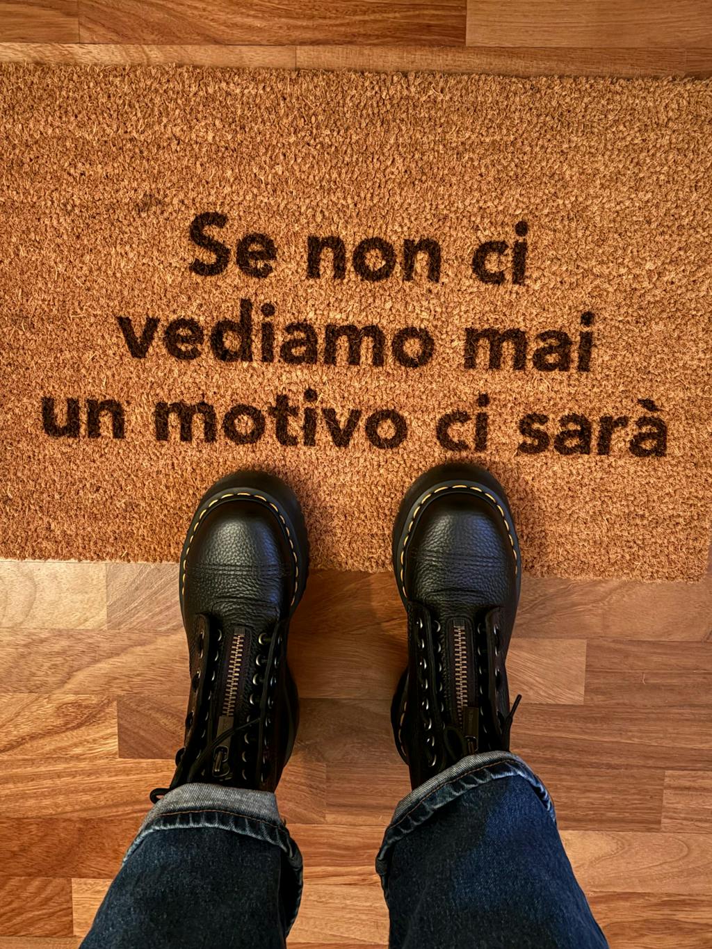 Zerbino da interno in fibra di cocco con scritta "Se non ci vediamo mai un motivo ci sarà".
