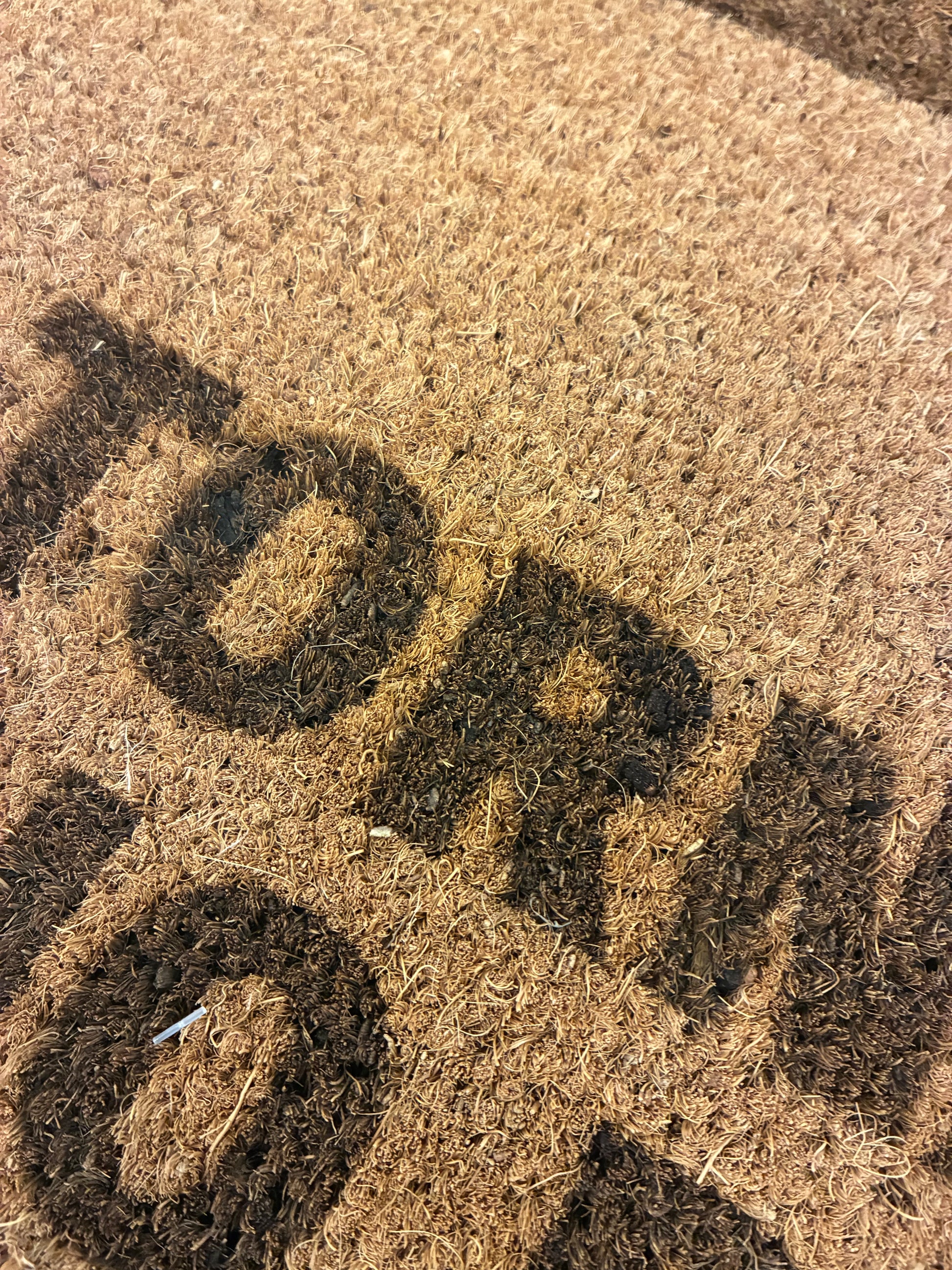 Zerbino in fibra di cocco e base antiscivolo in lattice naturale “Torna al tuo paese”.